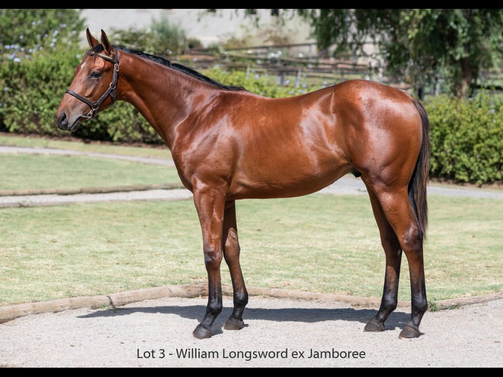 | 3 | UNNAMED | COLT | WILLIAM LONGSWORD | JAMBOREE | BLACK MINNALOUSHE (USA) | KLAWERVLEI STUD (PTY) LTD | R450,000 | PETER AND ROSS DOYLE BLOODSTOCK LIMITED |