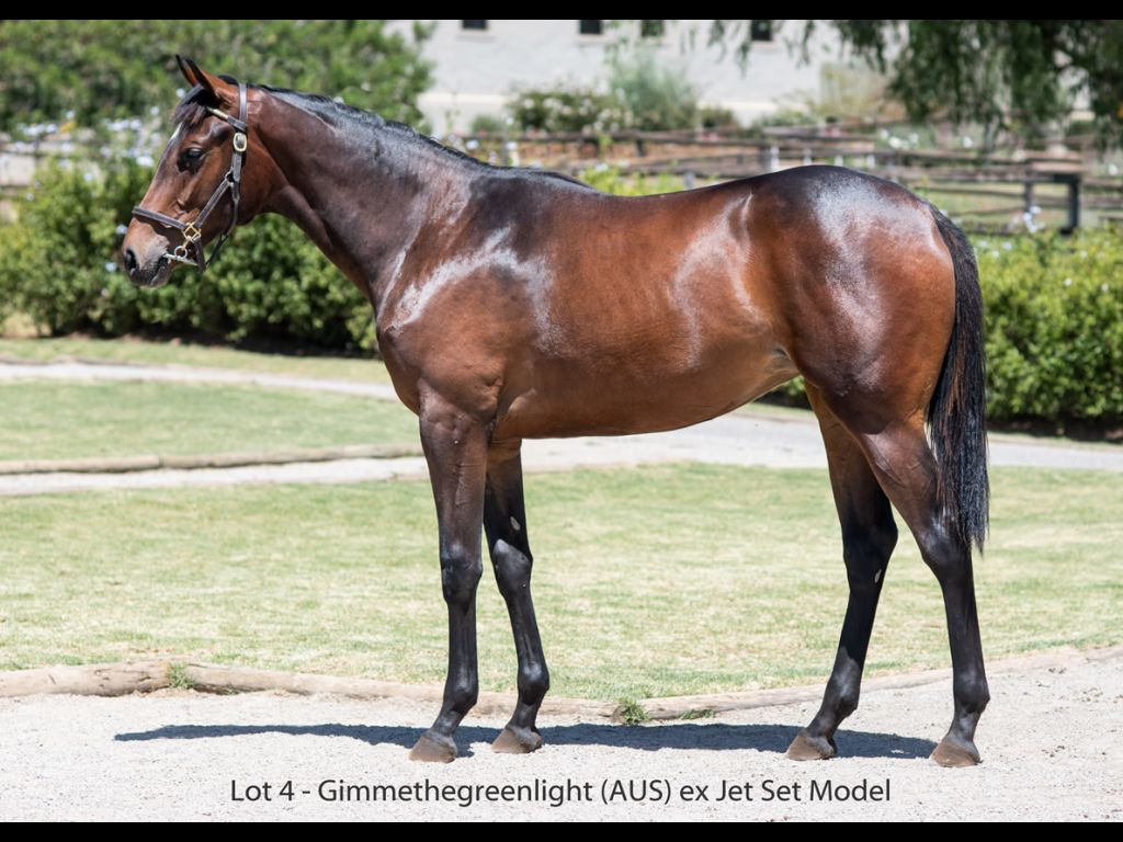 | 4 | UNNAMED | FILLY | GIMMETHEGREENLIGHT (AUS) | JET SET MODEL | JET MASTER | KLAWERVLEI STUD (PTY) LTD | R300,000 | RAINBOW BEACH TRADING |