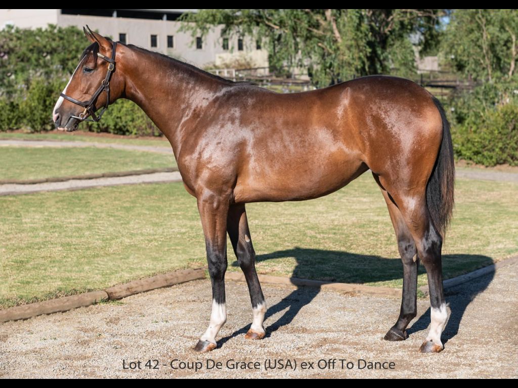 | 42 | UNNAMED | FILLY | COUP DE GRACE (USA) | OFF TO DANCE | NATIONAL EMBLEM | KLAWERVLEI STUD (PTY) LTD | NOT SOLD | |