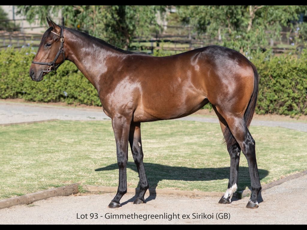 | 24 | UNNAMED | FILLY | GIMMETHEGREENLIGHT (AUS) | MAGNOLIA LANE (IRE) | SADLER'S WELLS (USA) | KLAWERVLEI STUD (PTY) LTD | R250,000 | EI BLOODSTOCK |