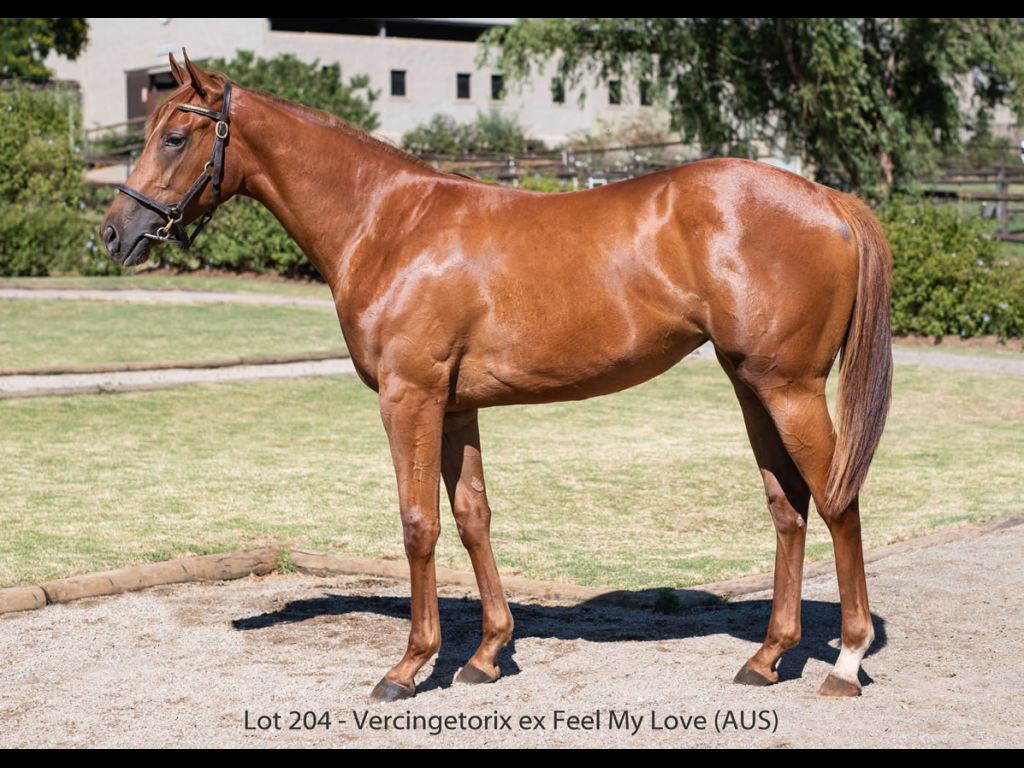 | 204 | UNNAMED | FILLY | VERCINGETORIX | FEEL MY LOVE (AUS) | FUSAICHI PEGASUS (USA) | KLAWERVLEI STUD (PTY) LTD | NOT SOLD | |