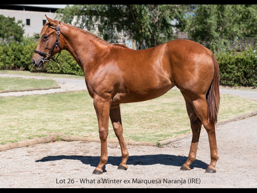 | 26 | UNNAMED | FILLY | WHAT A WINTER | MARQUESA NARANJA (IRE) | DUKE OF MARMALADE (IRE) | KLAWERVLEI STUD (PTY) LTD | R250,000 | GLEN KOTZEN |